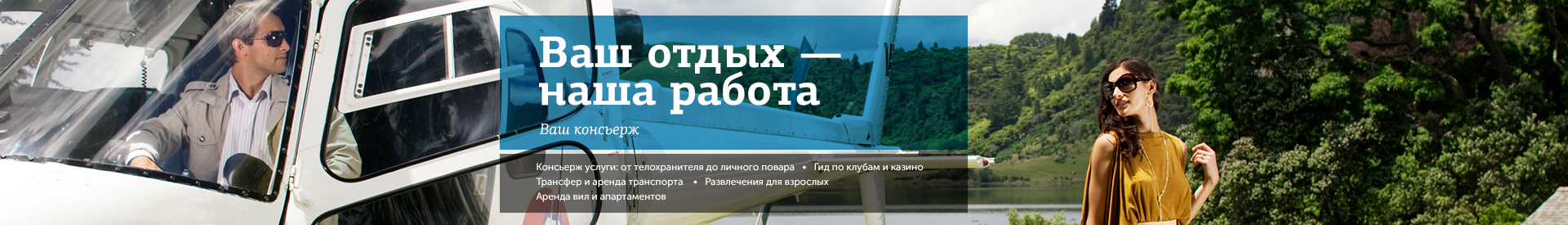 Где бы Вы не находились, куда бы Вы не собирались поехать, Вы можете быть уверены, что найдете на нашем портале нужную услугу. С нашей помощью Вы можете приобрести авиабилеты на любое направление, забронировать отель или апартаменты, заказать индивидуальные экскурсии и трансферы в любом городе мира. Благодаря обширной партнерской сети, наши консьержи к Вашим услугам в любой стране по Вашему выбору. В любой точке мира Вы можете рассчитывать на нас.